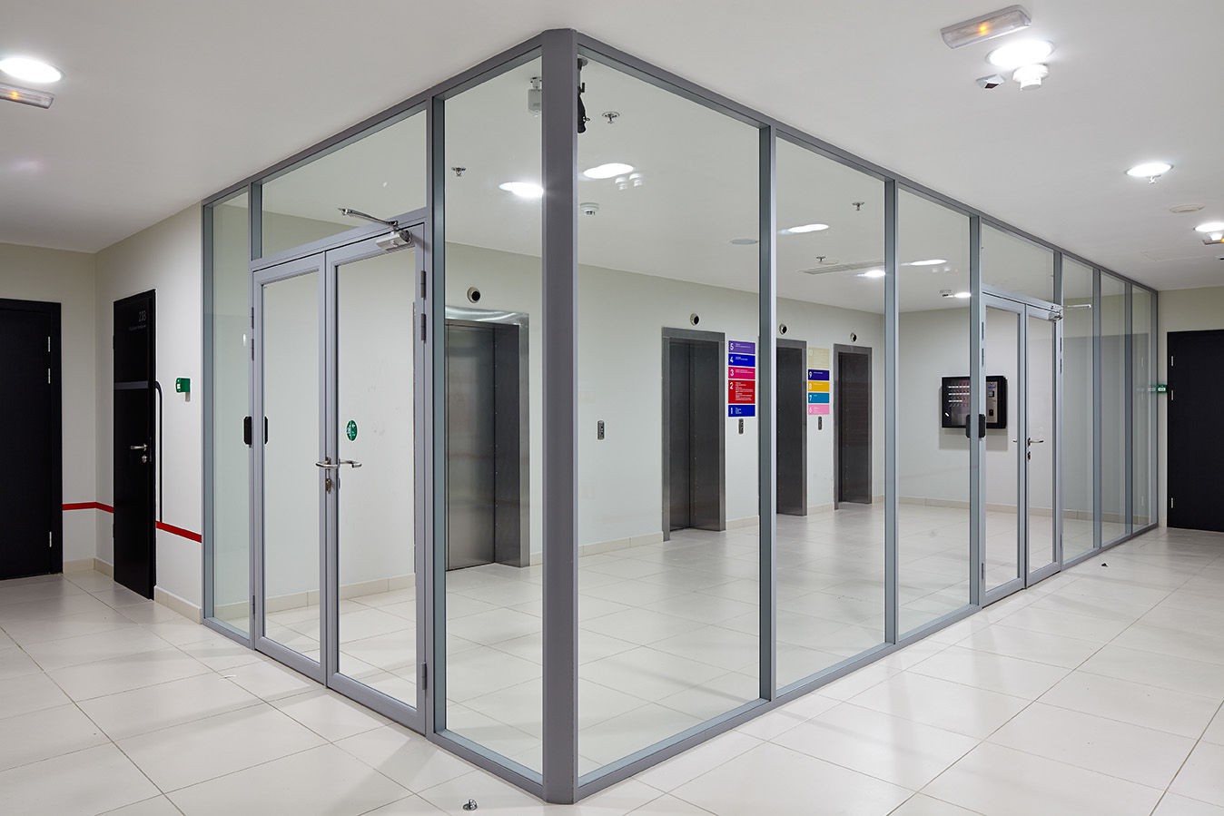 Противопожарные перегородки EI 60 могут изготавливаться как в полностью остекленном варианте, так и в частично остекленном исполнении. Основное предназначение таких конструкций — это разделение общего помещения на несколько отдельных рабочих зон. При этом преследуется несколько целей: