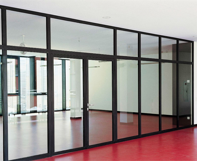 Противопожарные перегородки с одинарным стеклом могут изготавливаться как в полностью остекленном варианте, так и в частично остекленном исполнении. Основное предназначение таких конструкций — это разделение общего помещения на несколько отдельных рабочих зон. При этом преследуется несколько целей: